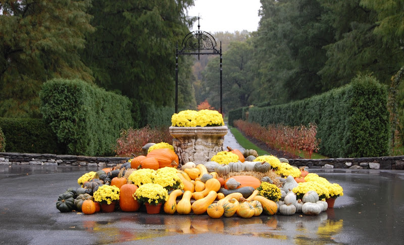 В связи с надвигающимся хеллоуином сады были уставленны тыквами, тыквочками и тыквыщами:-) Фигурно вырезанными и сложенными в живописные кучки.