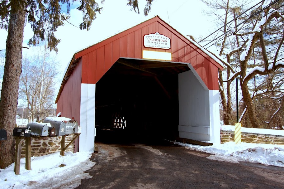 Если переехать речку по этому самому мосту (и тем самым оказатся в Пенсильвании), а потом сразу же повернуть направо и немножко проехатся попадаешь в очень красивое место. Городок называется Tinicum, но в городке мы не были - ограничились только крытым мостом - Uhlerstown Covered Bridge. Мостик очень симпатичный, а еще очень милые домики вокруг. Единственное, проблемно найти парковку рядом, вернее ее там просто нет, поэтому мы приткнули машину на уууузенькой улочке за мостом, решив, что если кто будет ехать - то мы вот тут рядышком и с радостью переставим машину.