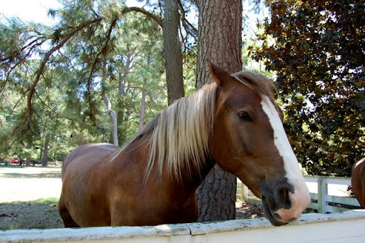 Практически на входе нас встретила дружелюбная, но очень грустная лошадка.