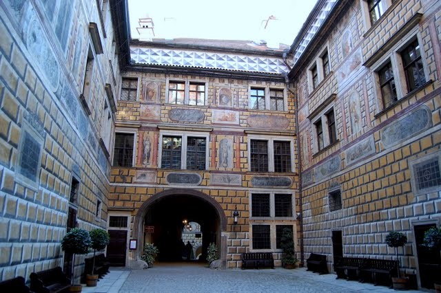 Замок Крумлова второй по велечине замок в Чехии (первый Пражский град, о котором я попозже расскажу). Начали строить его в 1240-1242 годах, а позже вокруг него вырос город. Изначально он принадлежал феодальному семейству Витковичей, которое позже разделилось на несколько ветвей, одна из которых Розенберги и унаследовала это монументальное строение, оно принадлежало им до 1602 года, 300 лет практически. После Розенбергов замком недолго владел император Рудольф II, который передарил его князу Эггенбергу, но его род вскоре угас и замок достался Шварценбергам, которые владели им вплоть до 1940 года.