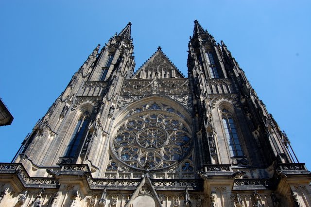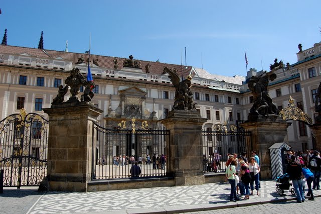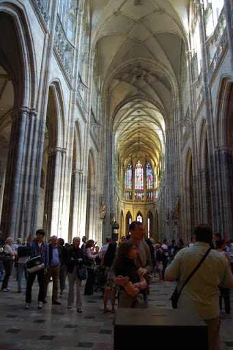 На територии Пражского града с утра, когда мы пришли туда, было просто не протолкнутся, таких толп туристов мы не видели за все наше путешествие, группы, групки, самостоятельные путешественники, даже вечно бурлящая Староместкая площадь по сравнению с Пражским градом выглядела пустыней. Поэтому мы плюнули и пошли гулять по округе, вернулись аж после обеда - народу на порядок меньше. Бродить по замку у нас особо не было времени, поэтому мы ограничились осмотром замка снаружи и заходом в Собор Святого Вита - уникальнейший памятник архитектуры. Он огромен и шедеврален, и в обьектив целиком не помещается:)